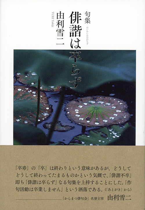 中学時代に由利先生に出会ってから私が七十五歳になった今でも、居心地の良い先生の懐に飛び込んでいる。カバー写真は撮りためておいた数多の中から本書のために皆が選び、先生も気に入ってくれた。蓮の葉は水滴を弾くが、こんな奇跡的なことも起こりえる。俳諧も病も全て受け止め、それをものにする由利先生の懐の大きさ、周囲を輝かせる雪二パワーがこの一葉にある。